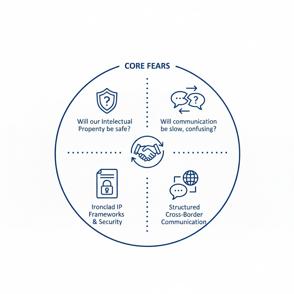 Outsourcing shouldn’t feel like a leap of faith. The resistance we often see from business leaders is rooted in two valid, critical concerns: Intellectual Property (IP) protection and ensuring effective cross-border communication.