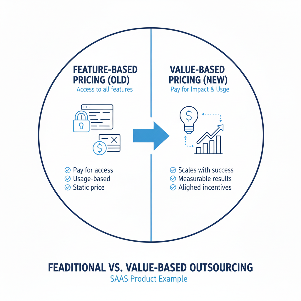 For outsourcing companies, the model shifts from selling time and skill to selling results and expertise.